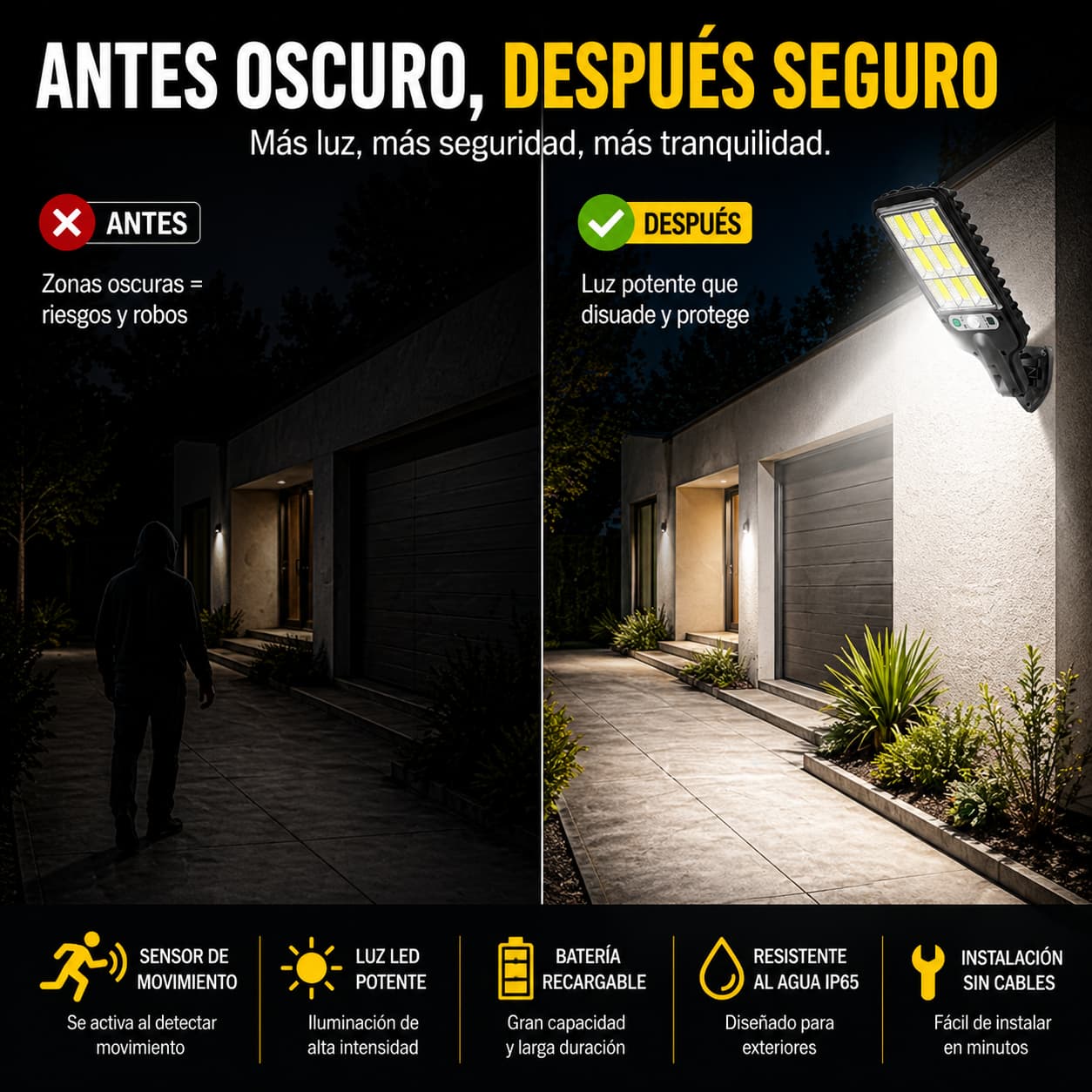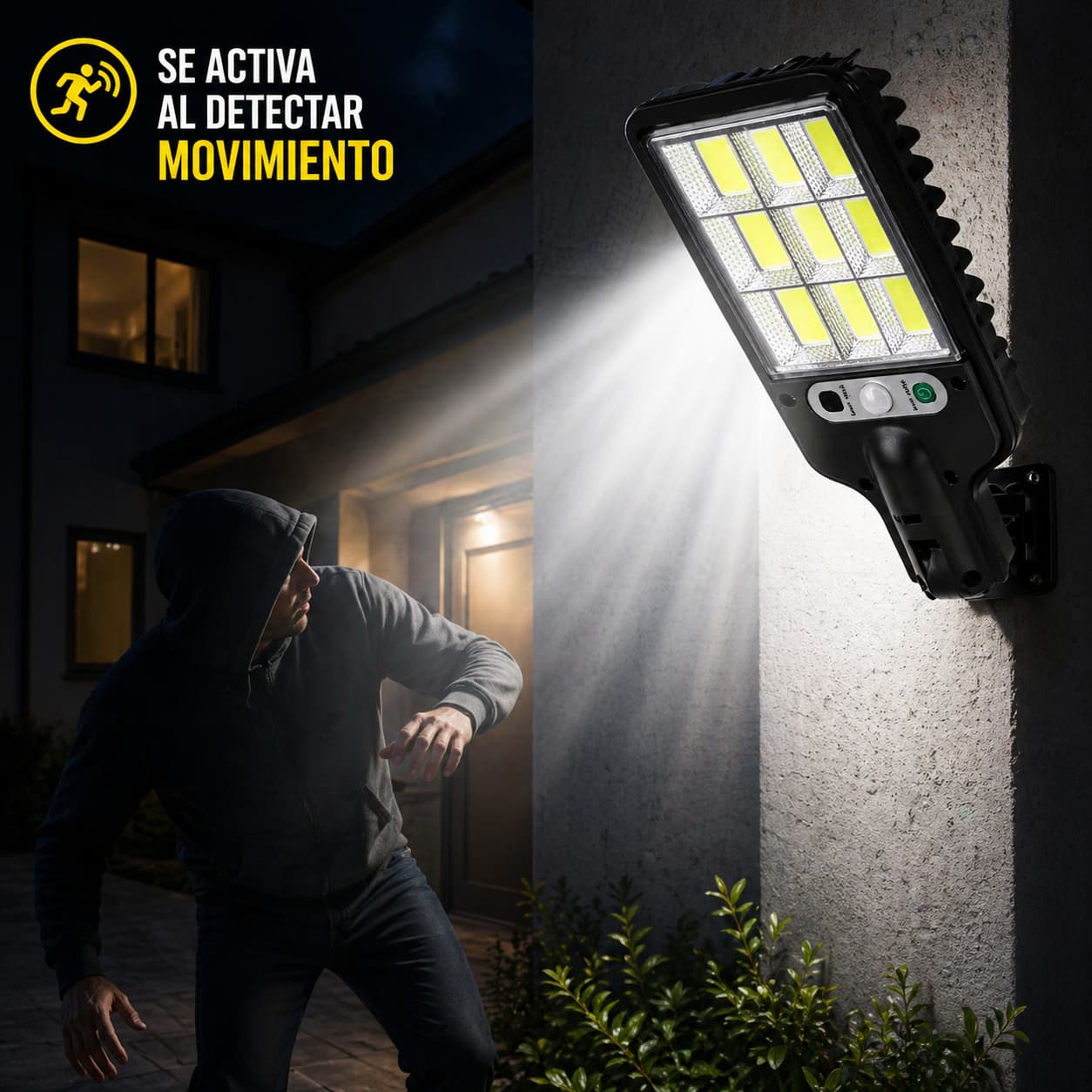 Detecta movimiento y activa una luz potente al instante, justo cuando alguien se acerca.
