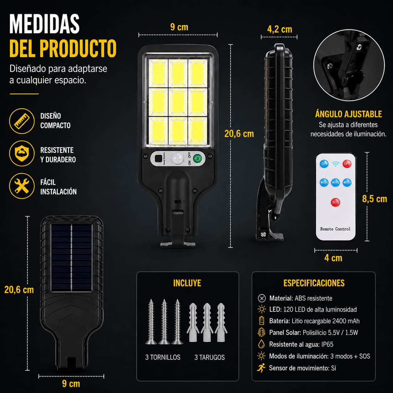 Reflectores solares con sensor de movimiento. Sin cables. Sin pagar luz.
